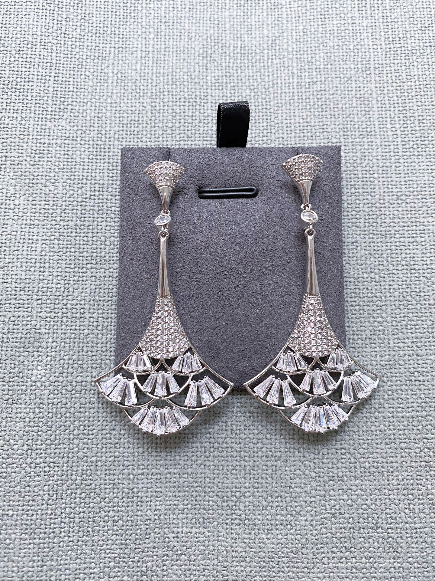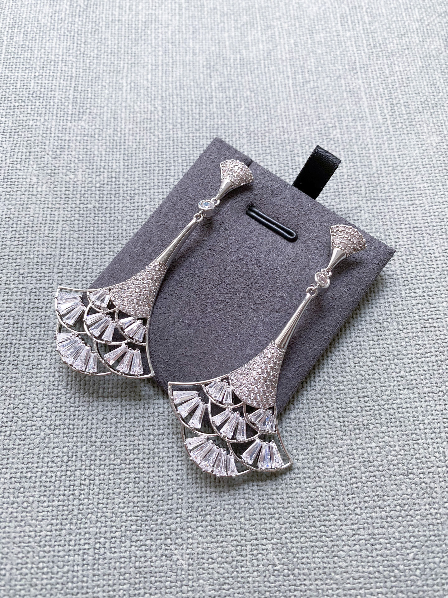 Ginkgo Fan-Shaped T Earrings – Rhodium White Gold