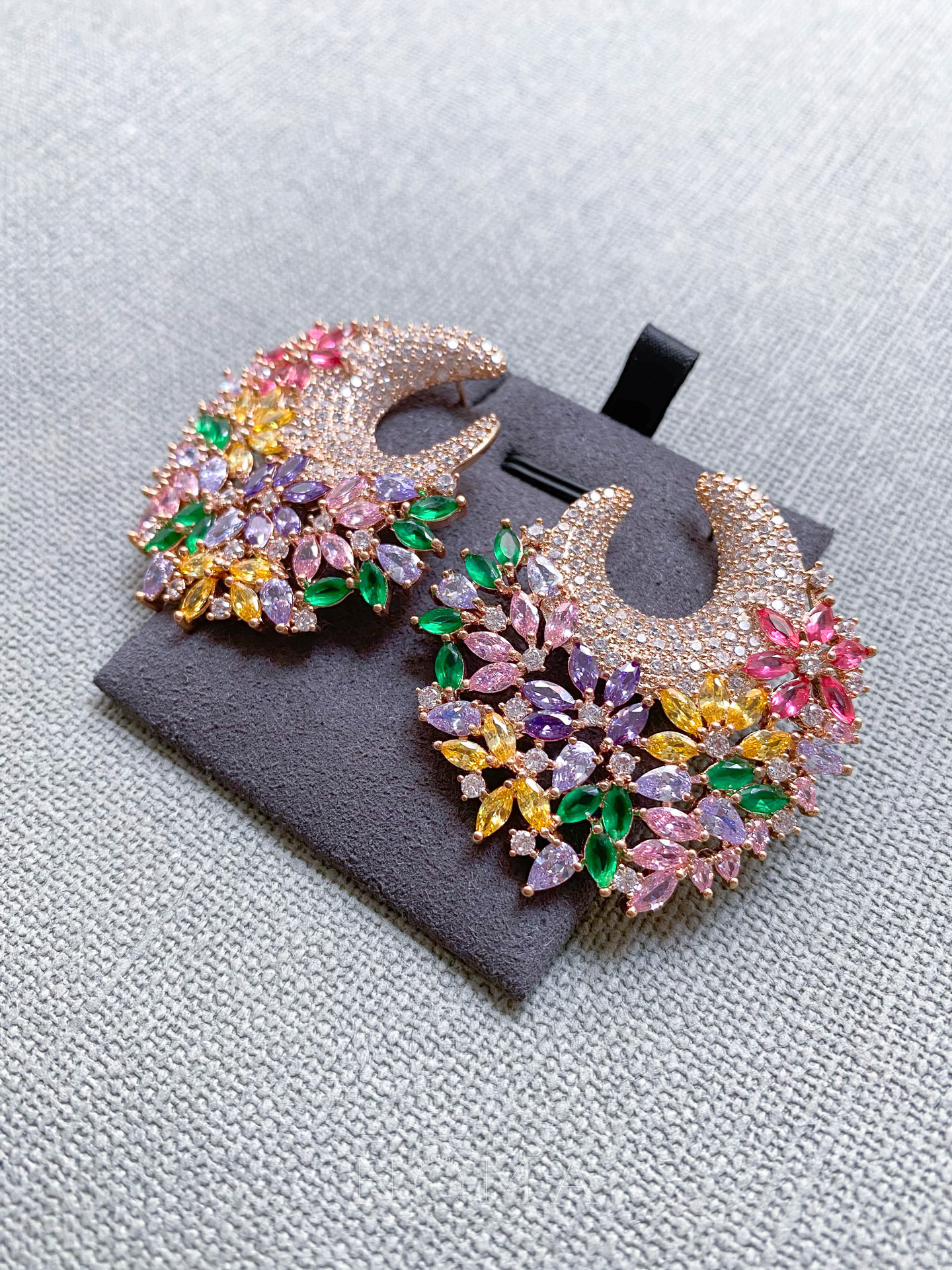 Vibrant Garden Garden Earrings – 18k Rose Gold, Rainbow