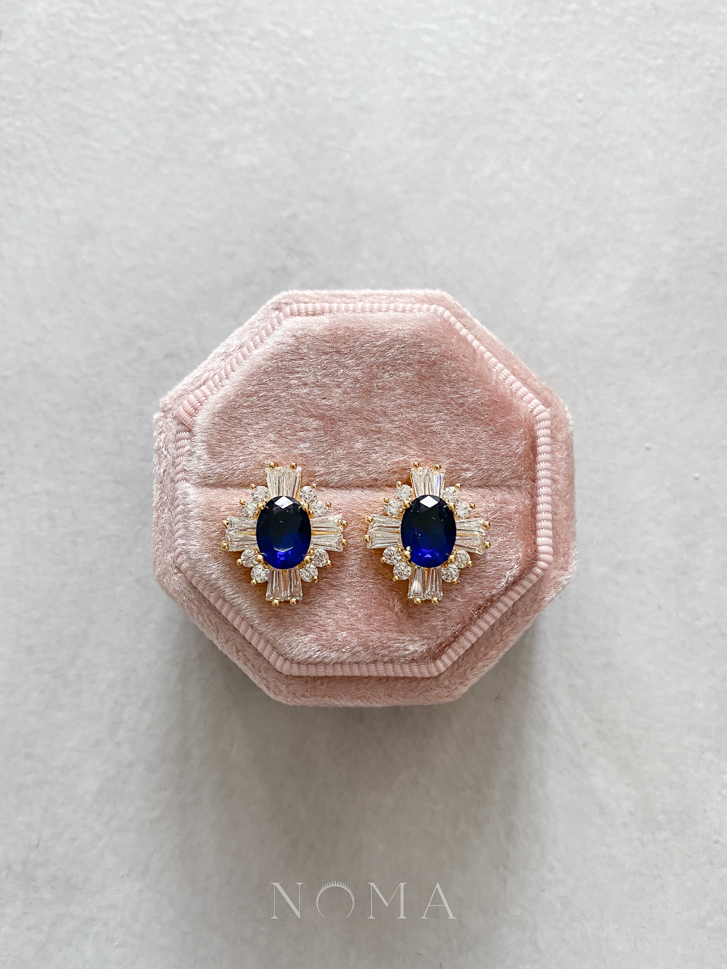 Oval T Arrangement Large Earrings – 18k Yellow Gold, Sapphire