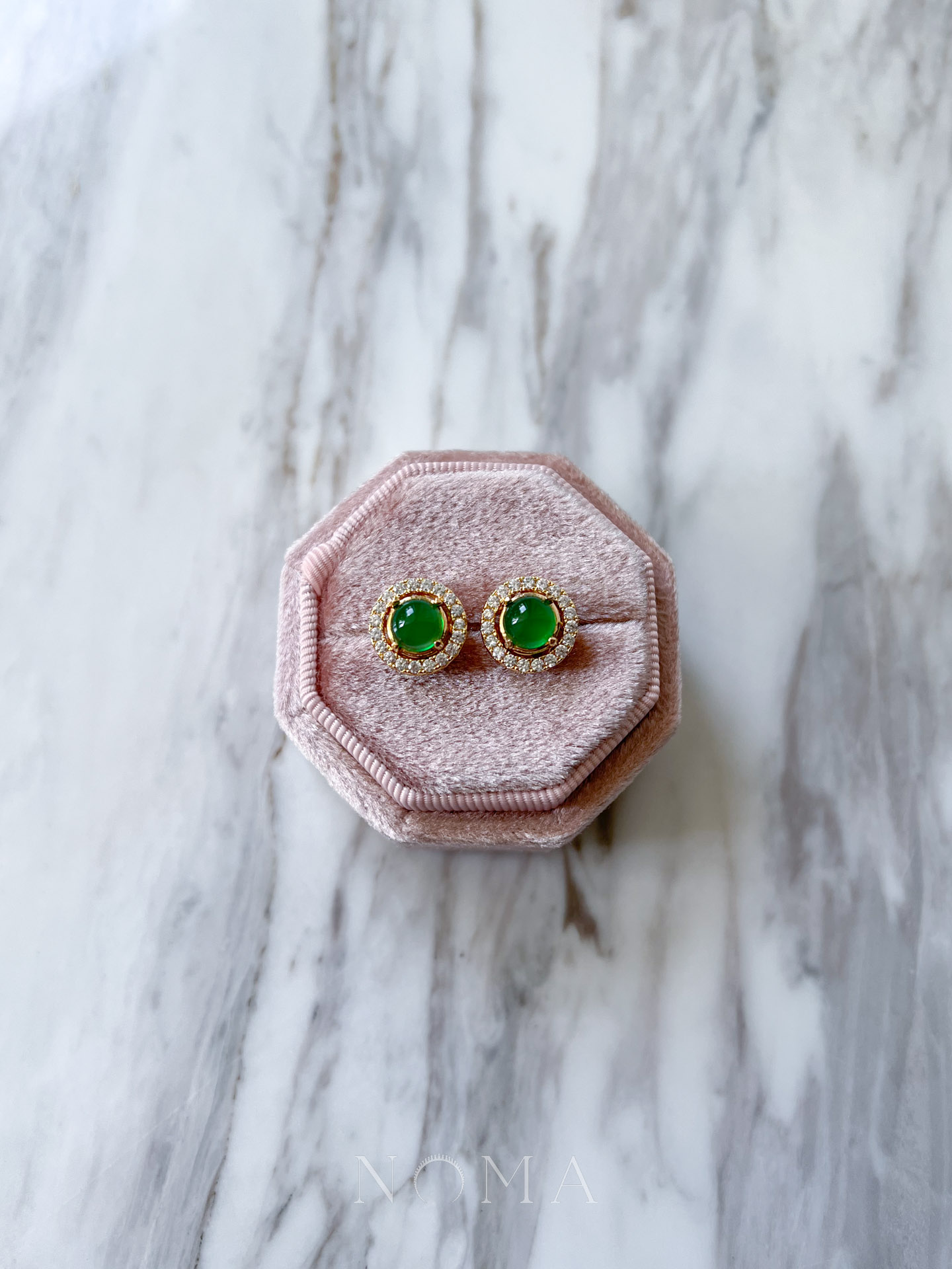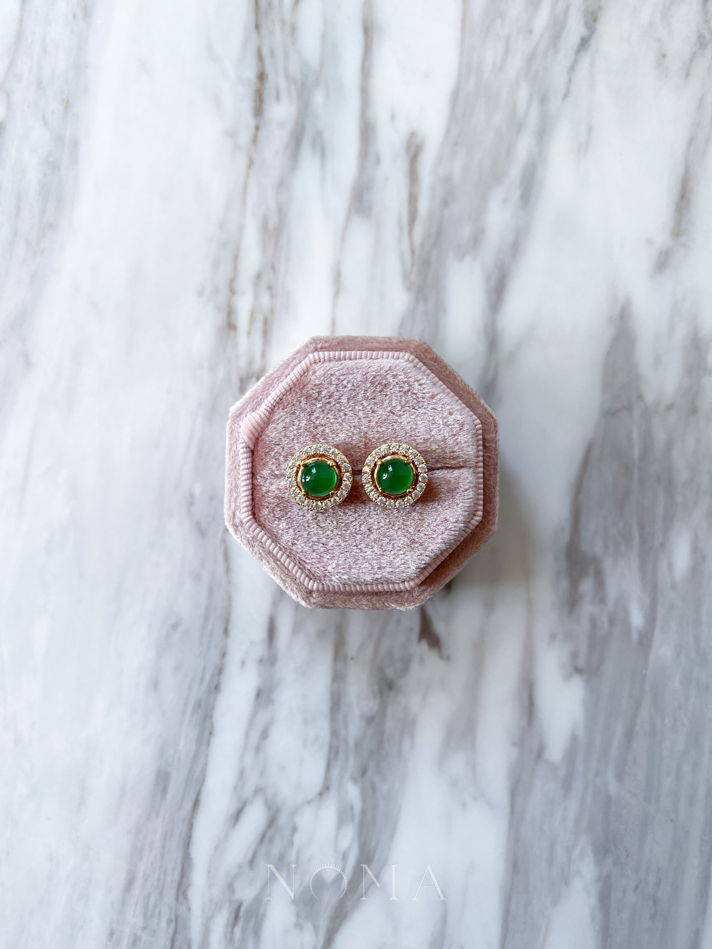 Round 1.5 ct Halo Detachable Earrings Set – 18k Yellow Gold, Jade (4 pcs)