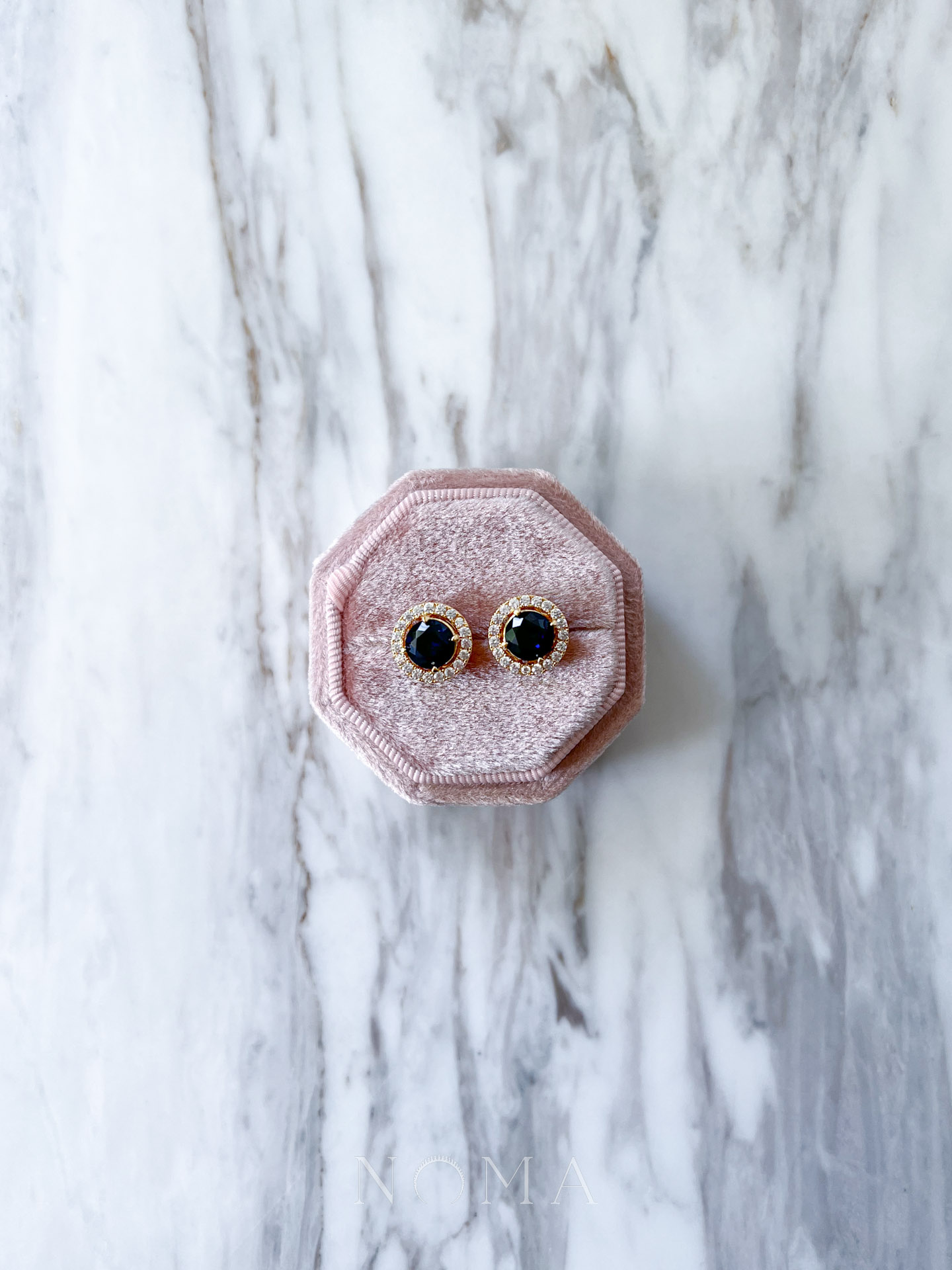 Round 1.5 ct Halo Detachable Earrings Set – 18k Yellow Gold, Sapphire (4 pcs)