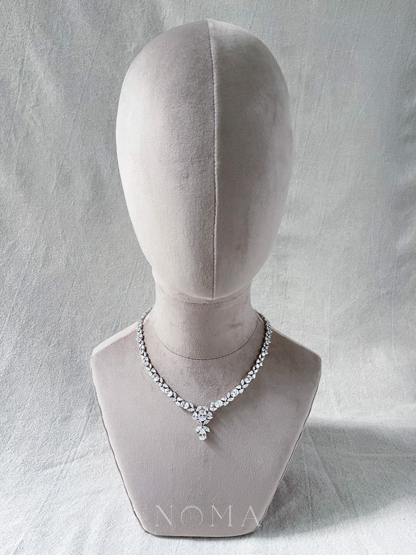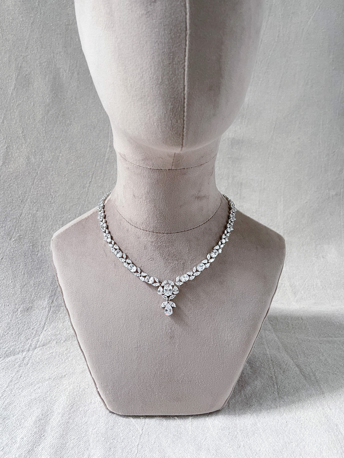Oval Arrangement Pear Necklace – Rhodium White Gold