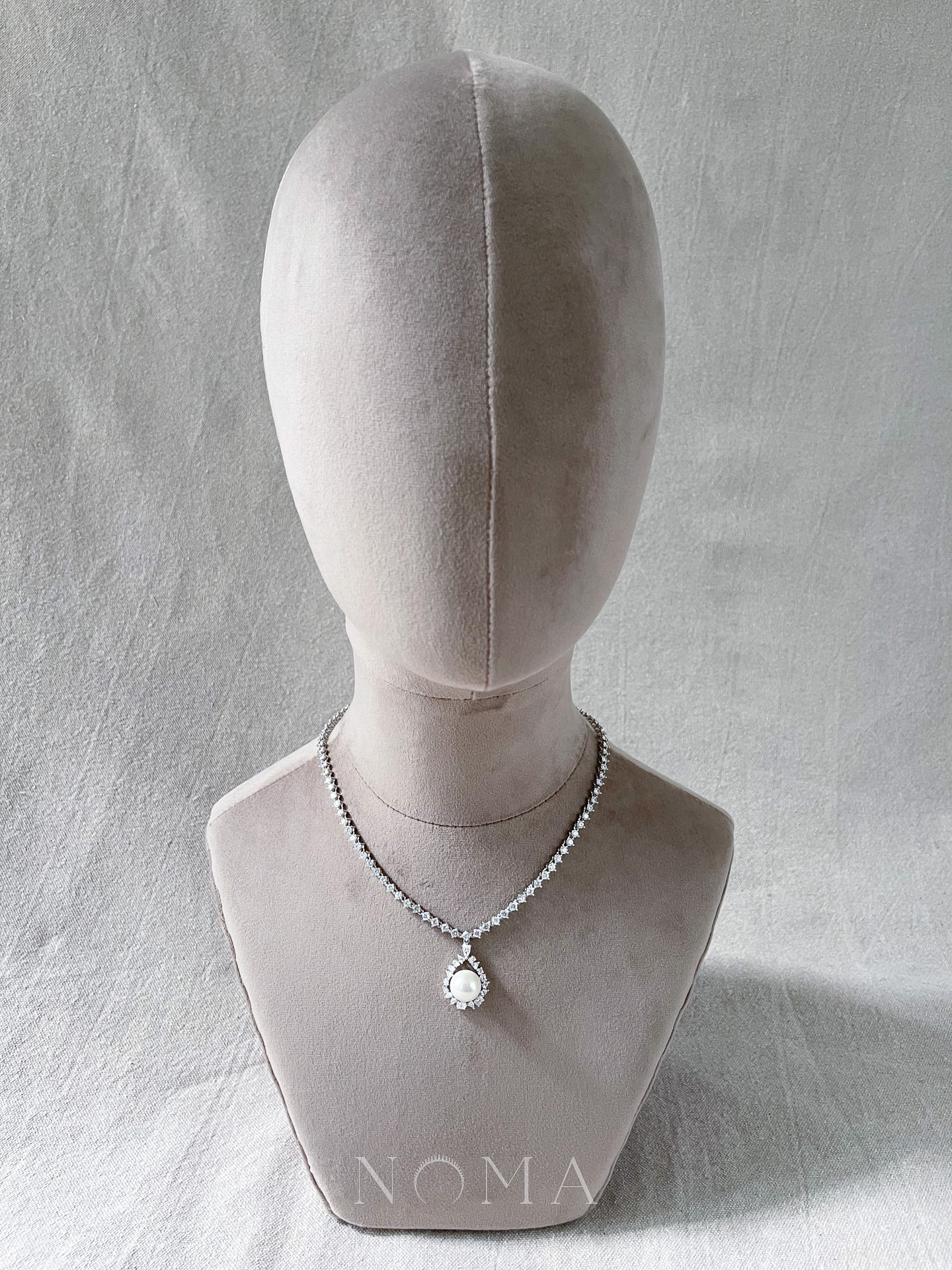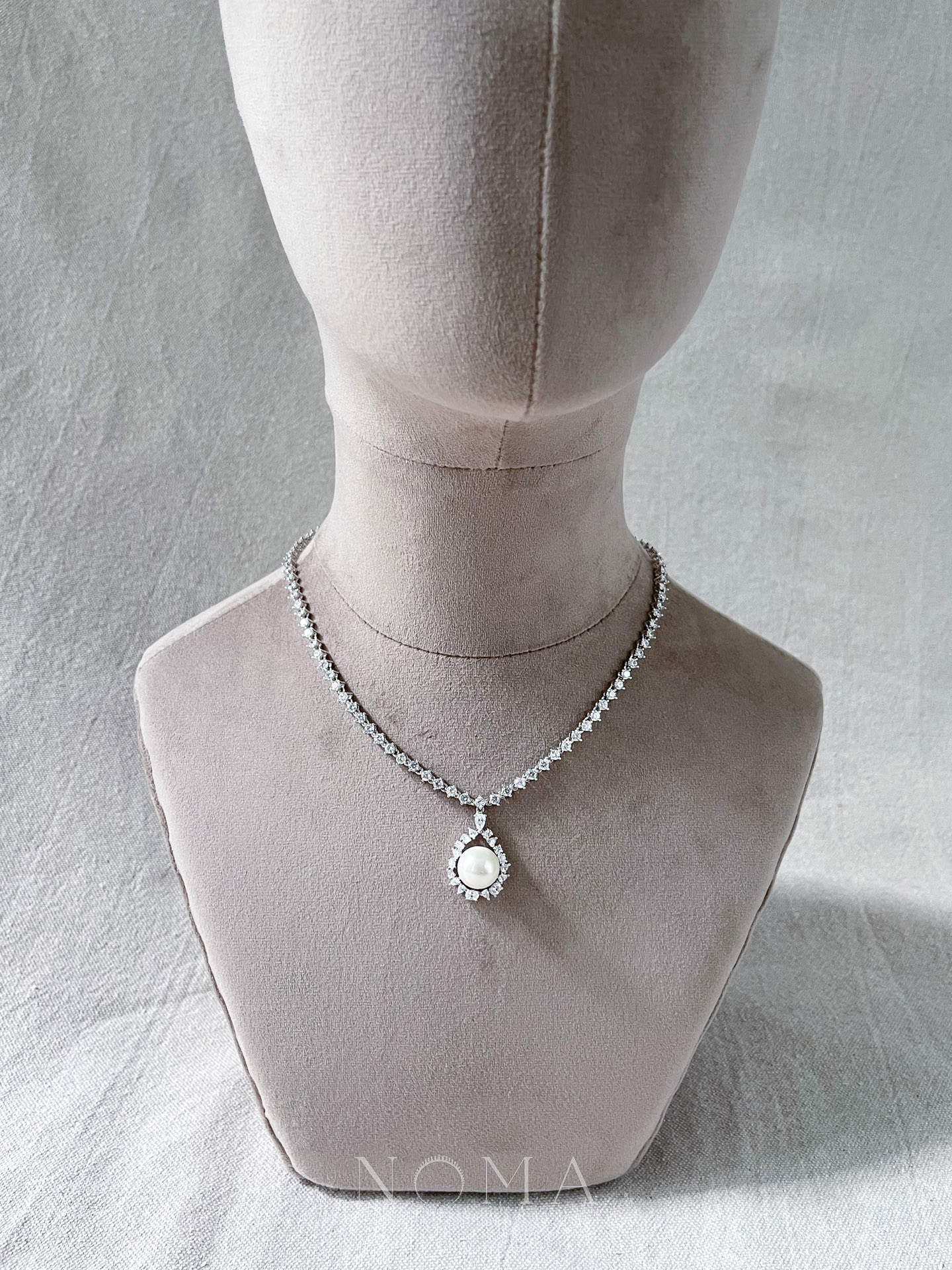 Pearl Pendant Round Necklace – Rhodium White Gold, White Pearl